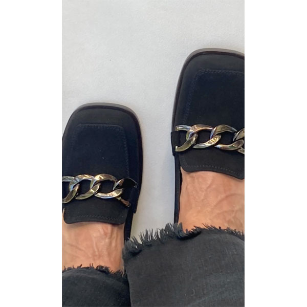 Zwart suede loafer met gesp, vierkante neus en blokhak 5cm