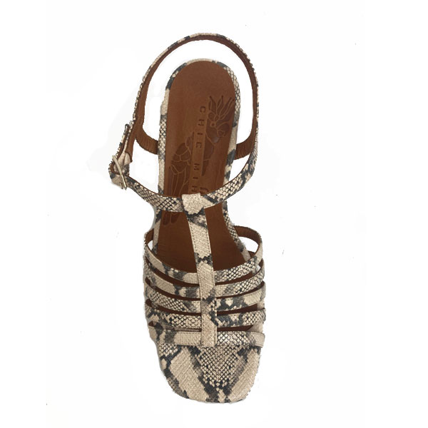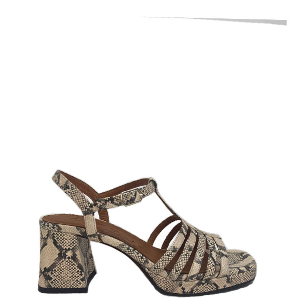 Slangenprint leren open schoen met blokhak en plateau, hak 7cm