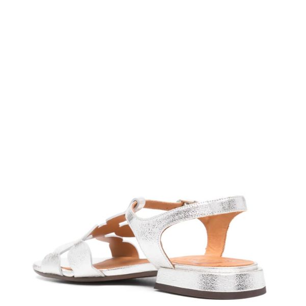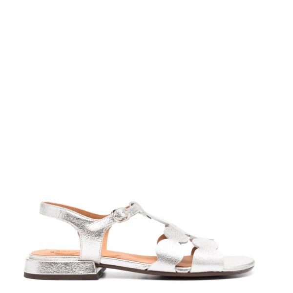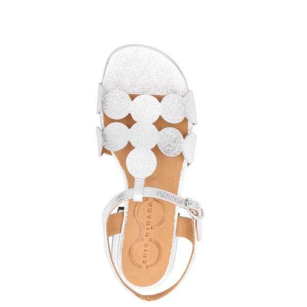Zilveren leren sandaal Toika met T-band en beklede hak.