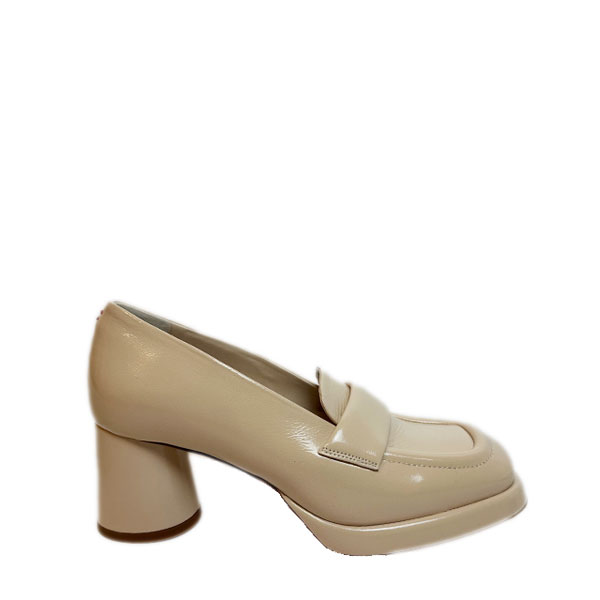 Off-white Lacklederloafer mit Plateausohle und rundem Absatz, 6 cm