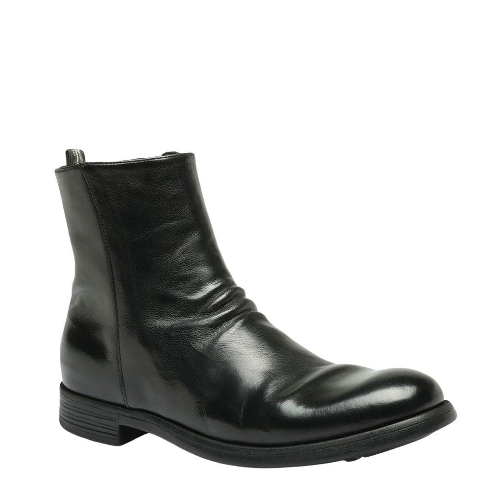 Schwarzer Chronicle-Leder-Ankle Boot mit Reißverschluss an der Innenseite und einer Gummisohle. Handgefertigt in Italien.