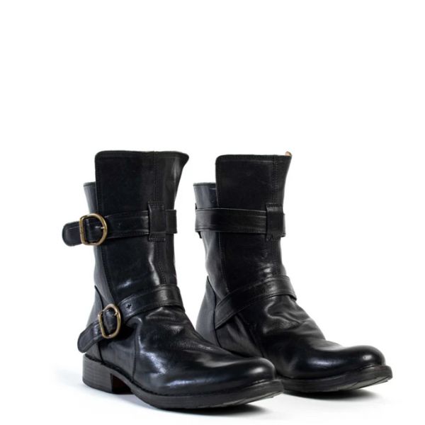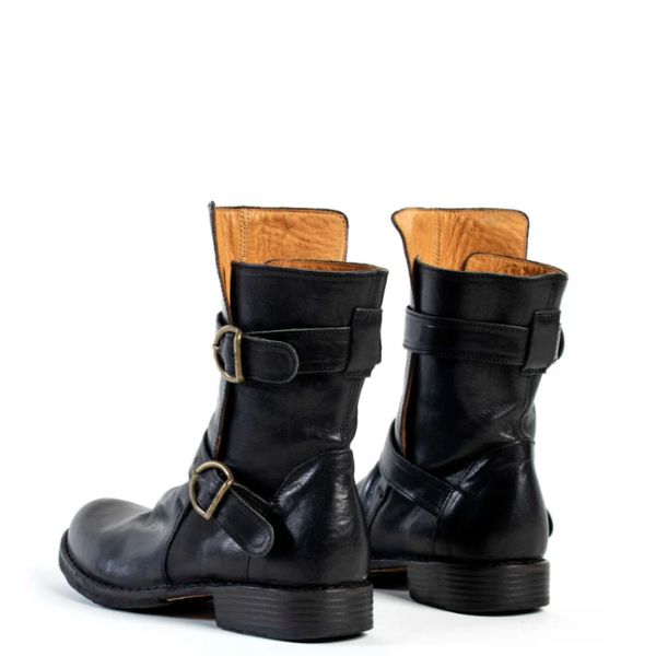 Black leather 713 boot with 3 straps