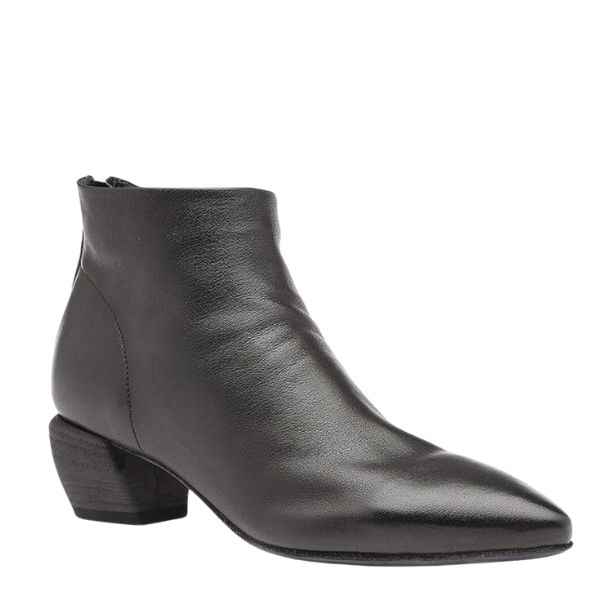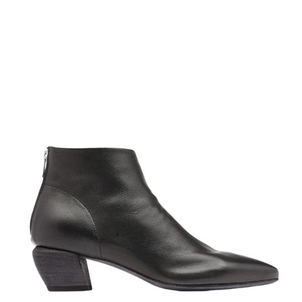 Elegant black soft leather ankle boot, pointed toe, 4.5 cm heel