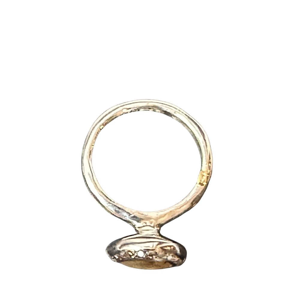 Silver Beenu ring set with a gold-colored rutile quartz of 1.62ct, surrounded by 22 cognac-colored diamonds of 0.24ct