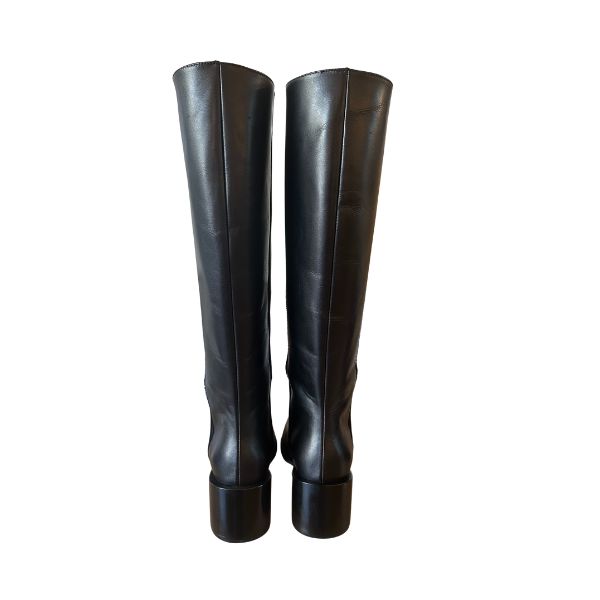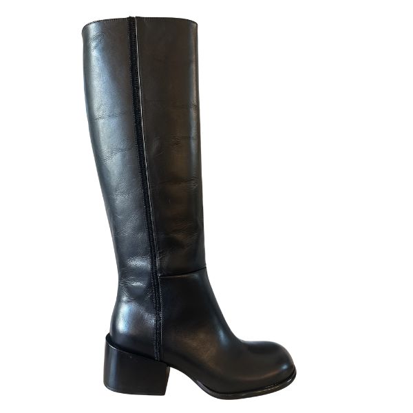 Black leather high boot, wide 5.5cm heel