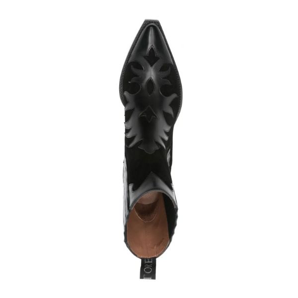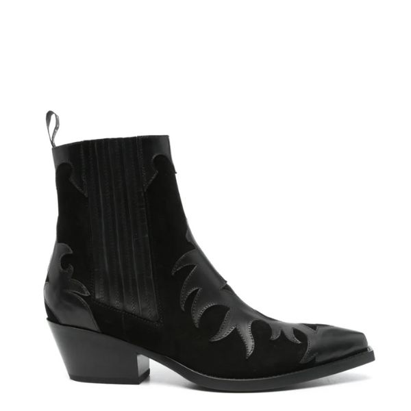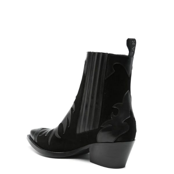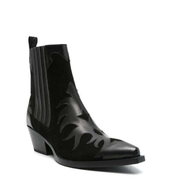 Black suede flame-detailed Western boot with black leather details, heel 3.5cm