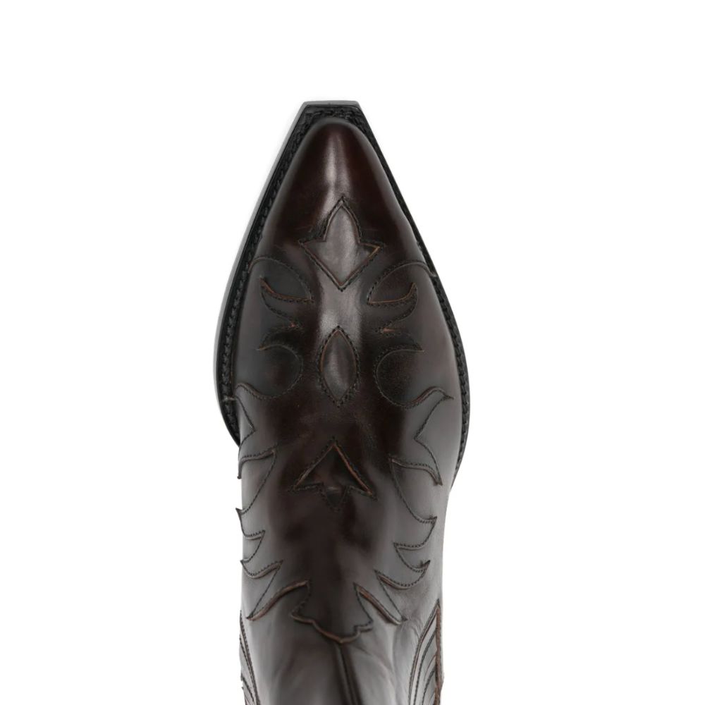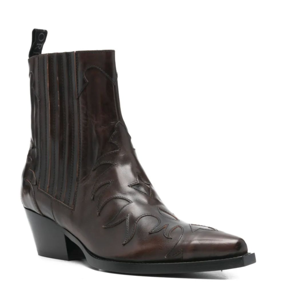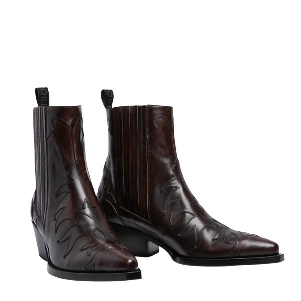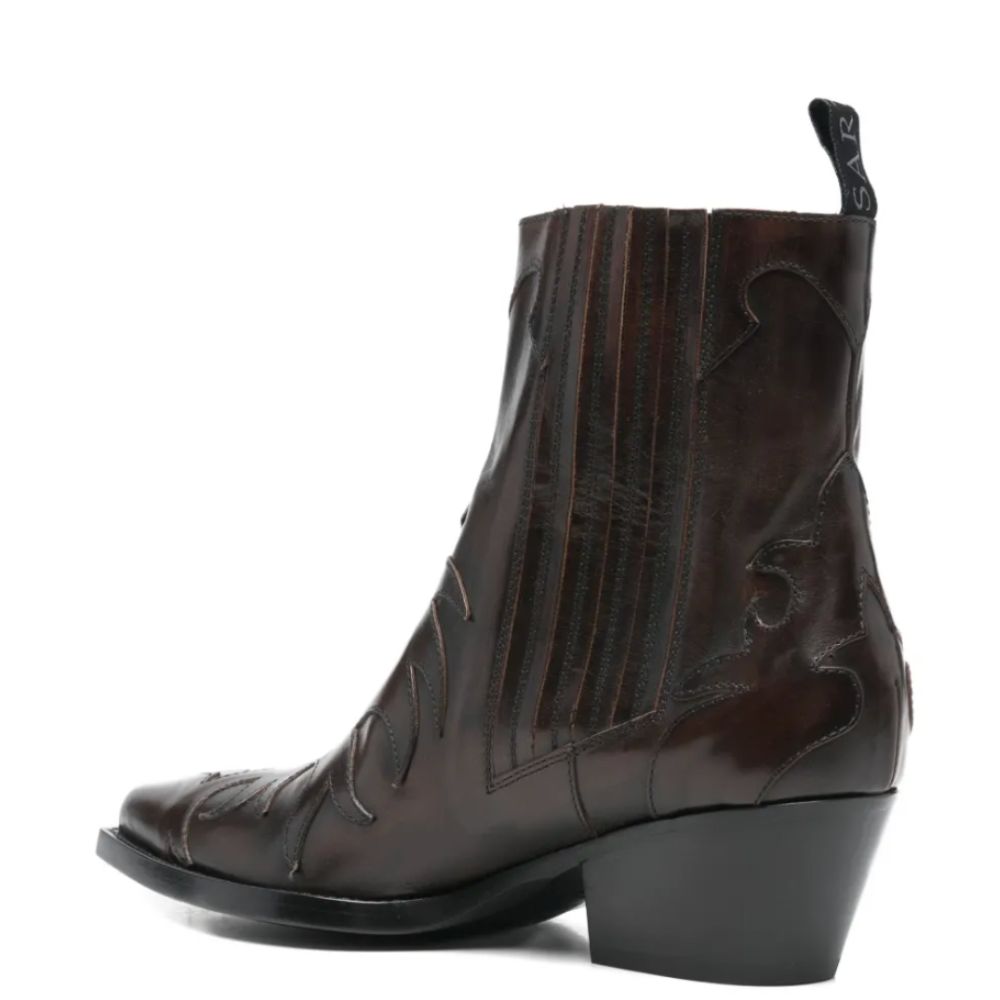 Chestnut brown leather flame-stitch western boot, heel 3.5cm