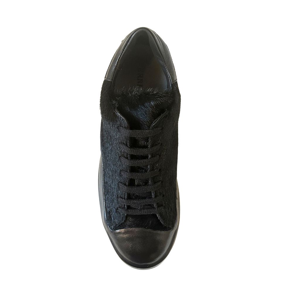 Zwarte sneaker met ponyhaar en zwarte rubberen zool