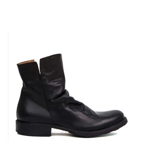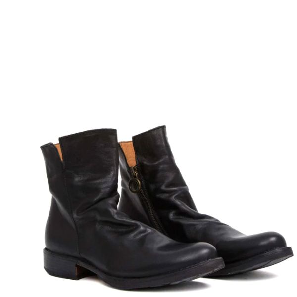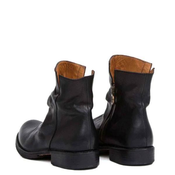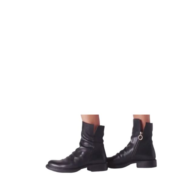 Zwart leren enkellaars Elf, schuine ritssluiting, hakhoogte 2cm