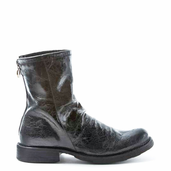 Grijzig lakleren enkellaars Even, ronde neus, ritssluiting op de hiel.