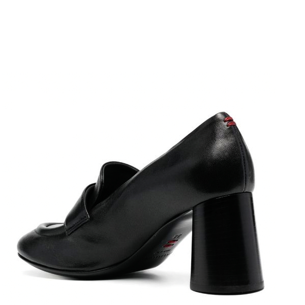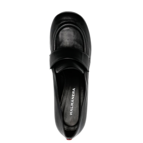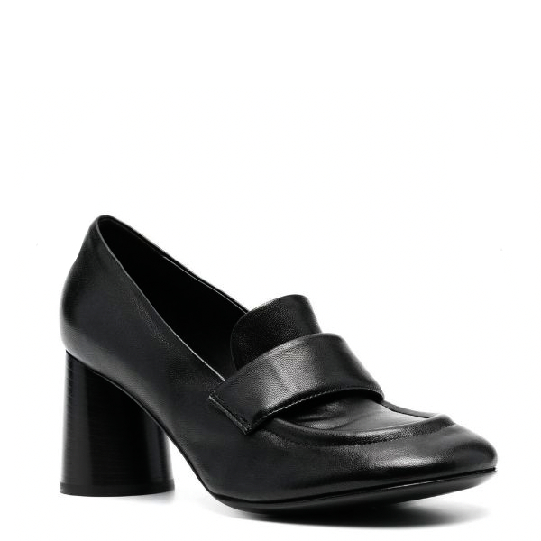 Zwart leren Loafer met ronde neus, ronde hak 7cm