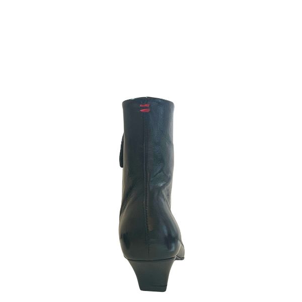Zwart glanzende puntige leren enkellaarzen, kleine hak 4cm