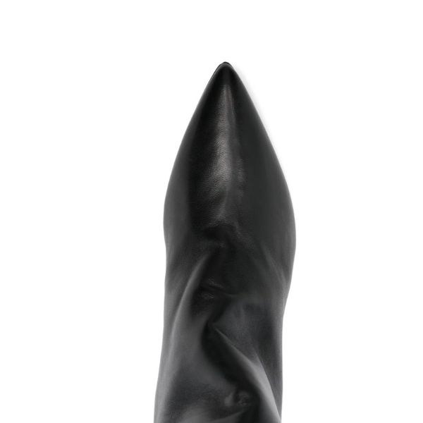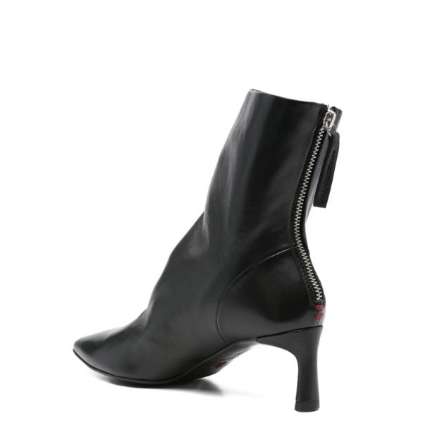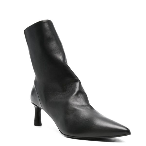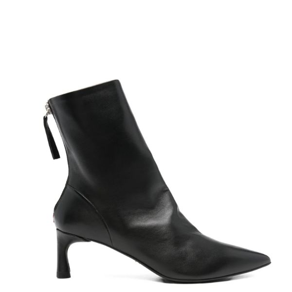 Zwarte puntige leren enkellaarzen, ritssluiting op de hiel, kleine hak 5 cm