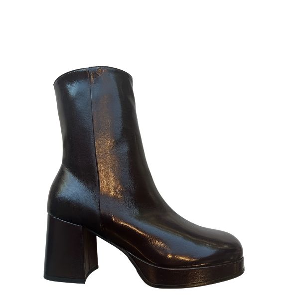Zwart leren enkellaars met ritssluiting binnenkant, plateauzool (2cm) en rechte hak (7,5cm)