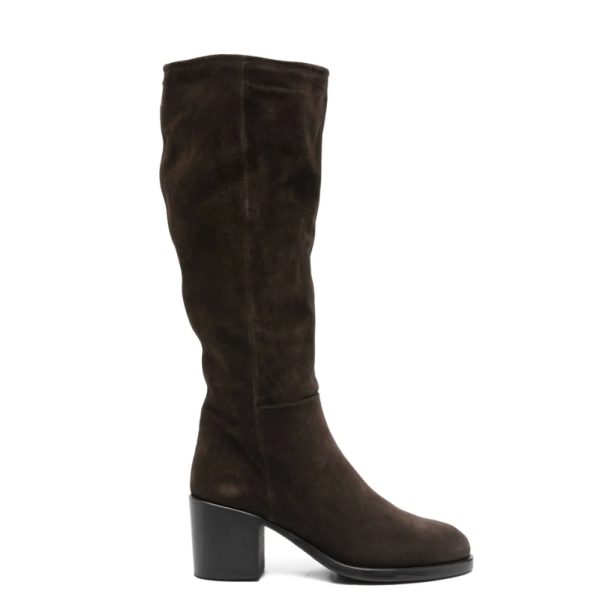Donkerbruine lange suede laars, hak 5,5cm